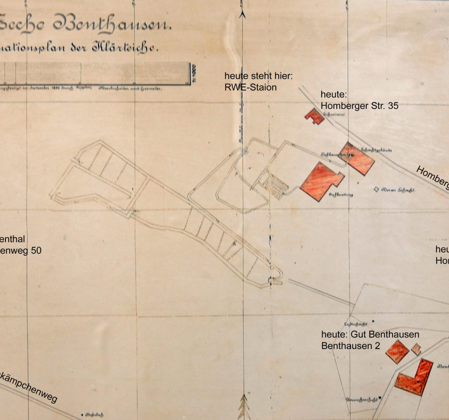 Bleierz-Zeche Benthausen und die Mettmanner Eisen-Stein ZechenDer auf Metzkausener Gebiet liegende Bergbaubetrieb Zeche Benthausen und die Mettmanner Eisenerzzechen:Corsica, Fortuna, Knürrenhaus, Verein, Regina, Aufschluß, Varus und Concordiaförderten im Jahr 1861 mit zusammen 112 Mann Belegschaft 87.235 Tausend Tonnen Eisenerz und 84 Tonnen Bleierz. Von den Grubenfeldern aus bestand eine ca. 500 Ruten (2,5 km) lange Pferdebahn nach der Mettmann-Wülfrather Chaussee, wo der Eisenstein auf gewöhnliche Pferdefuhrwerke zur Hütte nach Hochdahl umgeladen wurde.Alle Gruben, auch die seit dem Jahr 1752 bestehende Bleierzgrube Benthausen, sind heute stillgelegt. Die Anlagengebäude sind verschwunden.
